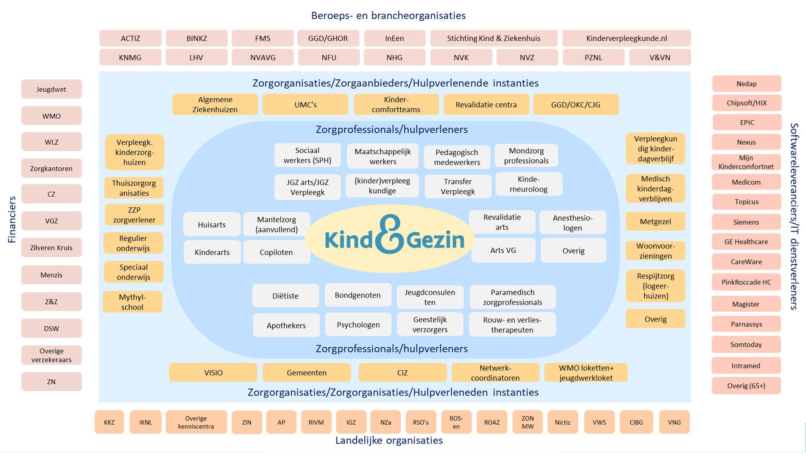 Dorine presenteert de illustratie die zij hebben gemaakt, waarin wordt weergegeven met wie een kind en gezin allemaal te maken heeft. "Ouders met een kind dat palliatieve zorg nodig heeft, hebben met ál deze mensen te maken. Met al deze mensen of partijen moeten afspraken worden gemaakt. Maar vaak hebben ze niet de benodigde informatie van elkaar, waardoor ouders vaak de specialist van hun kind worden. De medisch specialisten, die juist alle informatie nodig zouden hebben, weten vaak maar een stukje, lang niet alles. Dáárom is digitale gegevensuitwisseling zo belangrijk."
