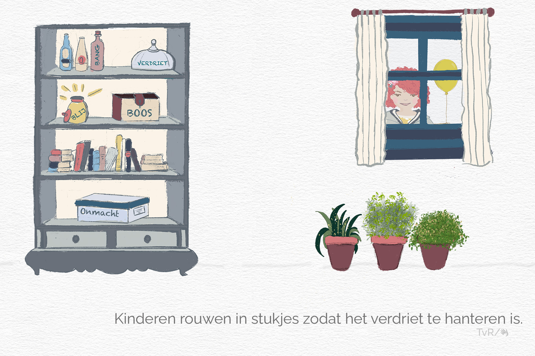 Tijdens het gehele ziekteverloop kun je te maken krijgen met één of meerdere slechtnieuwsgesprekken, ook als het overlijden nabij is. Kinderen gaan meestal heel anders met dit soort slechtnieuwsgesprekken om dan jij als ouder. Ze rouwen namelijk anders. Kinderen rouwen in kleine stukjes en zijn dus vaak een kortere tijd verdrietig. Kleine kinderen zijn vooral bezig met het hier en nu. Ze kunnen soepeler bewegen tussen het zoeken naar afleiding en rouwen. Dat is normaal. Het betekent niet dat ze de gevoelens negeren of wegstoppen, dat is gewoon de manier waarop ze ermee omgaan.