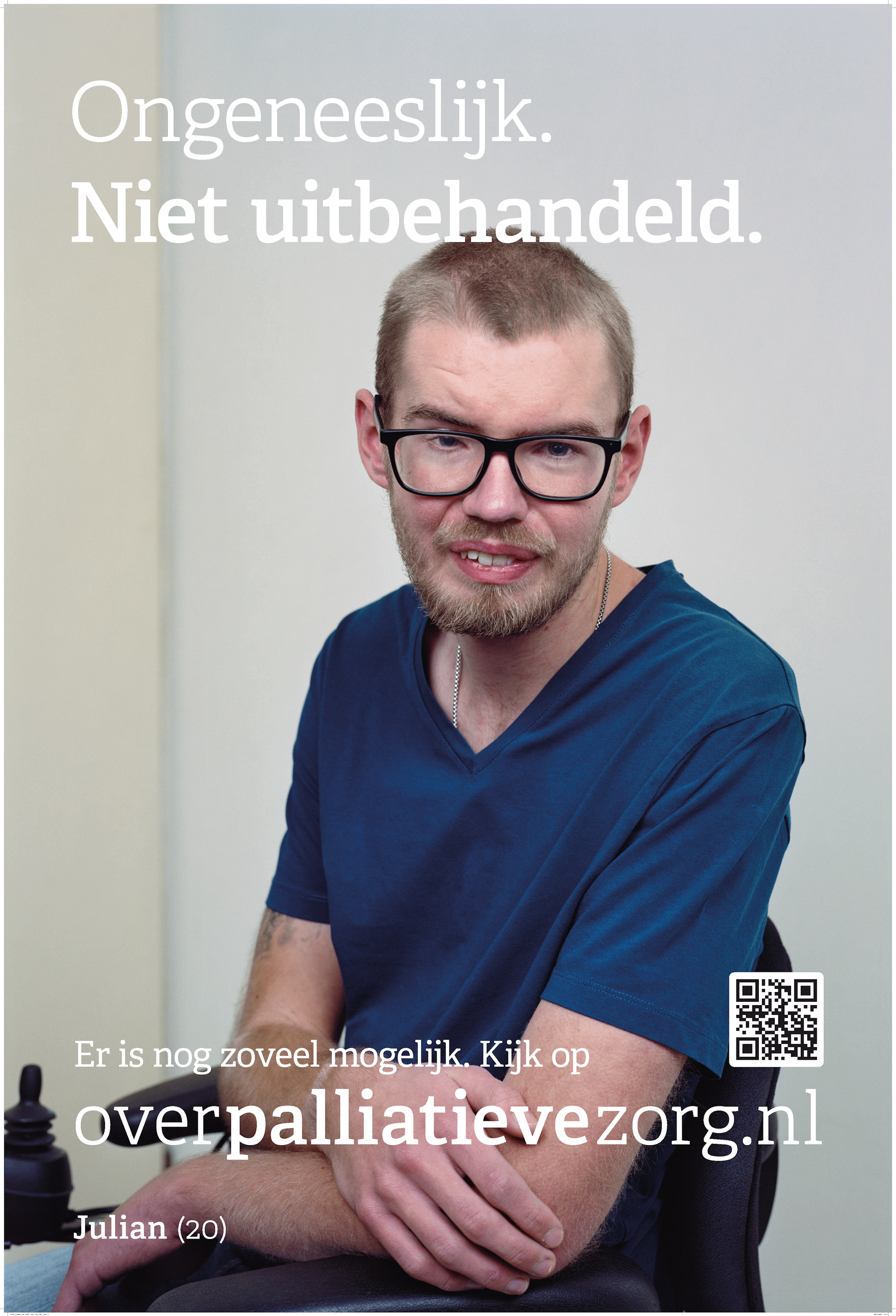 Op dit moment gaat het praten steeds moeizamer. Pijn heb ik af en toe, maar deze is niet heel erg. Met sterven ben ik zo min mogelijk bezig. Mijn intentie is om elke dag te leven en gewoon door te gaan, zo lang als het lukt. Ik ben echt niet alleen maar patiënt, ik ben bovenal mens. Daarom wilde ik graag meedoen aan deze campagne.’